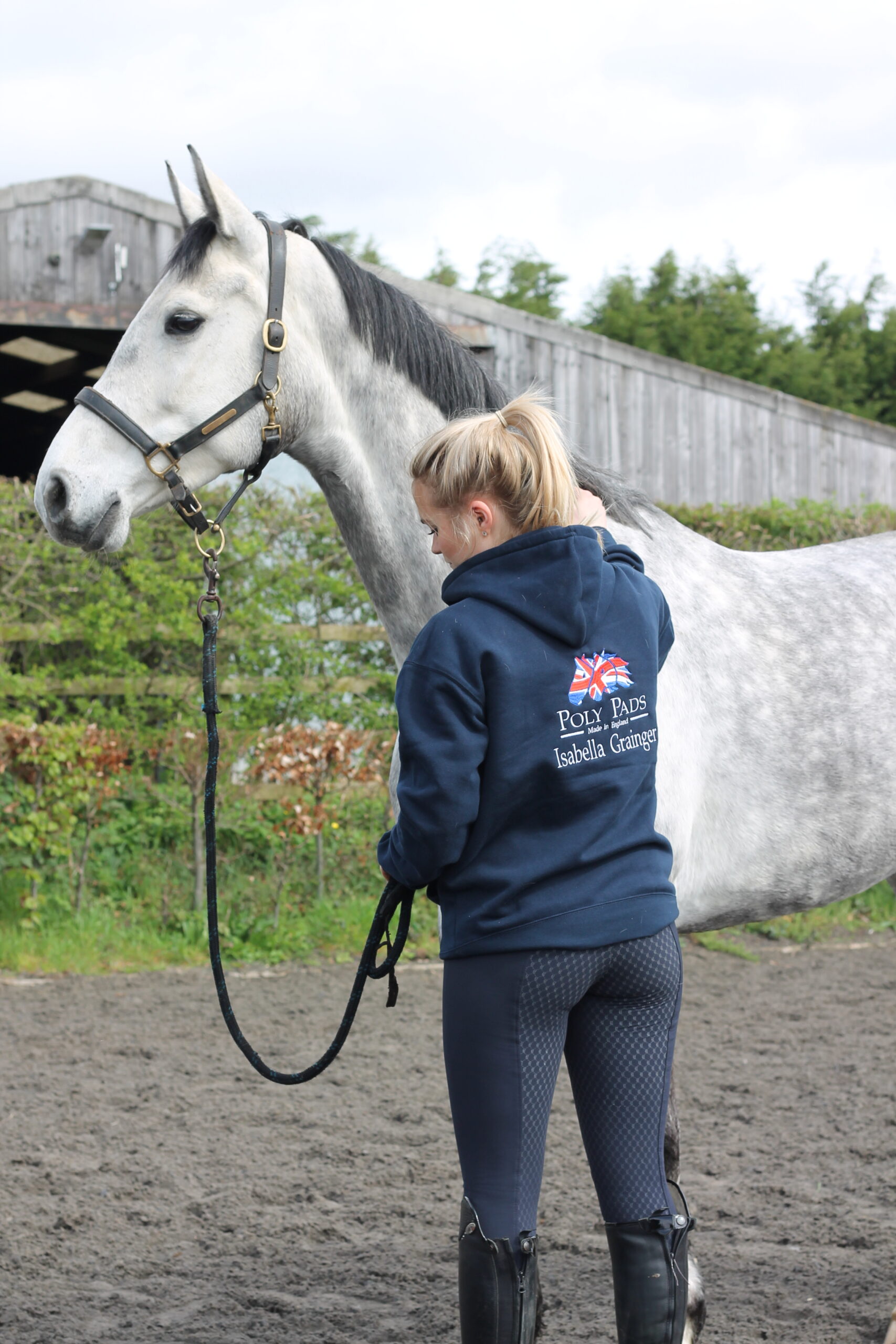 Stay warm and stylish with this cozy hoodie, available in colours to compliment the PolyPads saddle pads. Featuring the PolyPads brand logo as standard  and optional customised embroidery, this 100% cotton hoodie is perfect for layering at the yard or wearing as an everyday casual hoodie. The durable construction features: